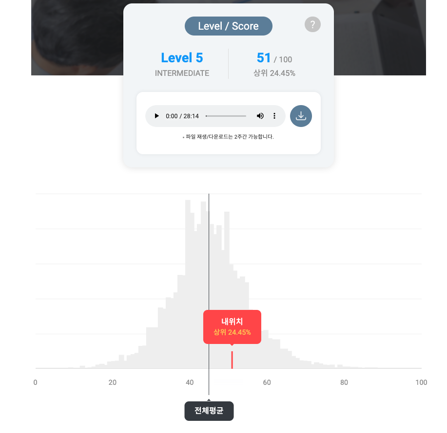 레벨테스트에서는 레벨 4가 나왔었다.