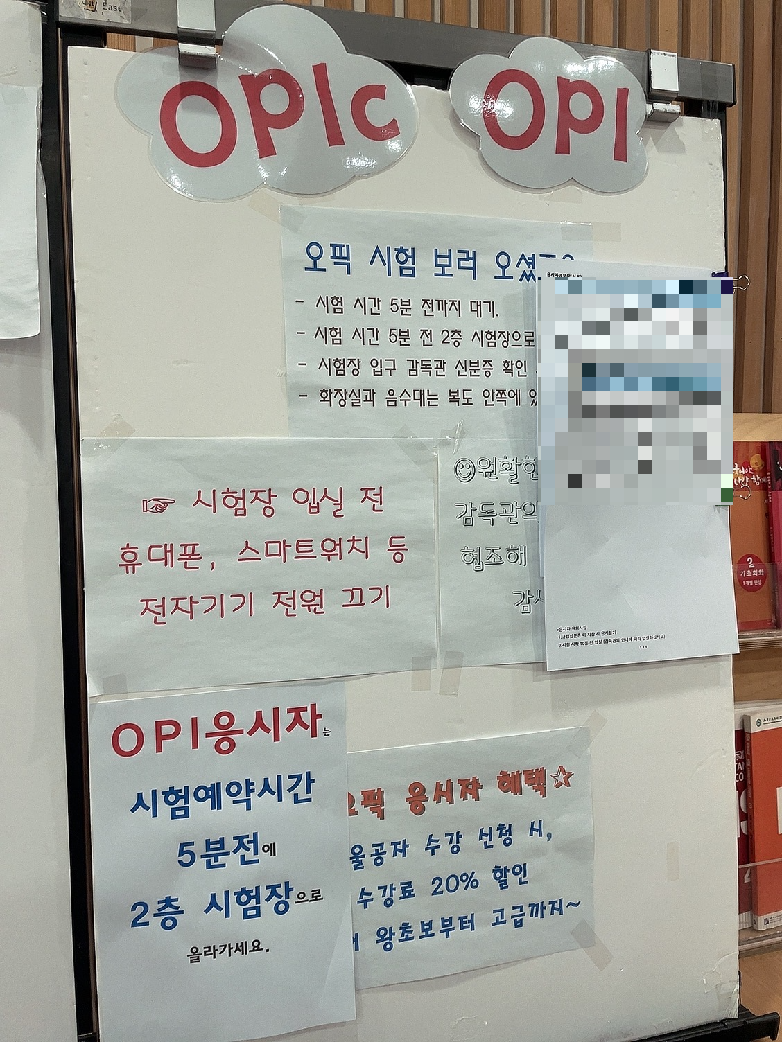 들어가면 오픽 수험생들을 위한 안내문이 붙어있다.